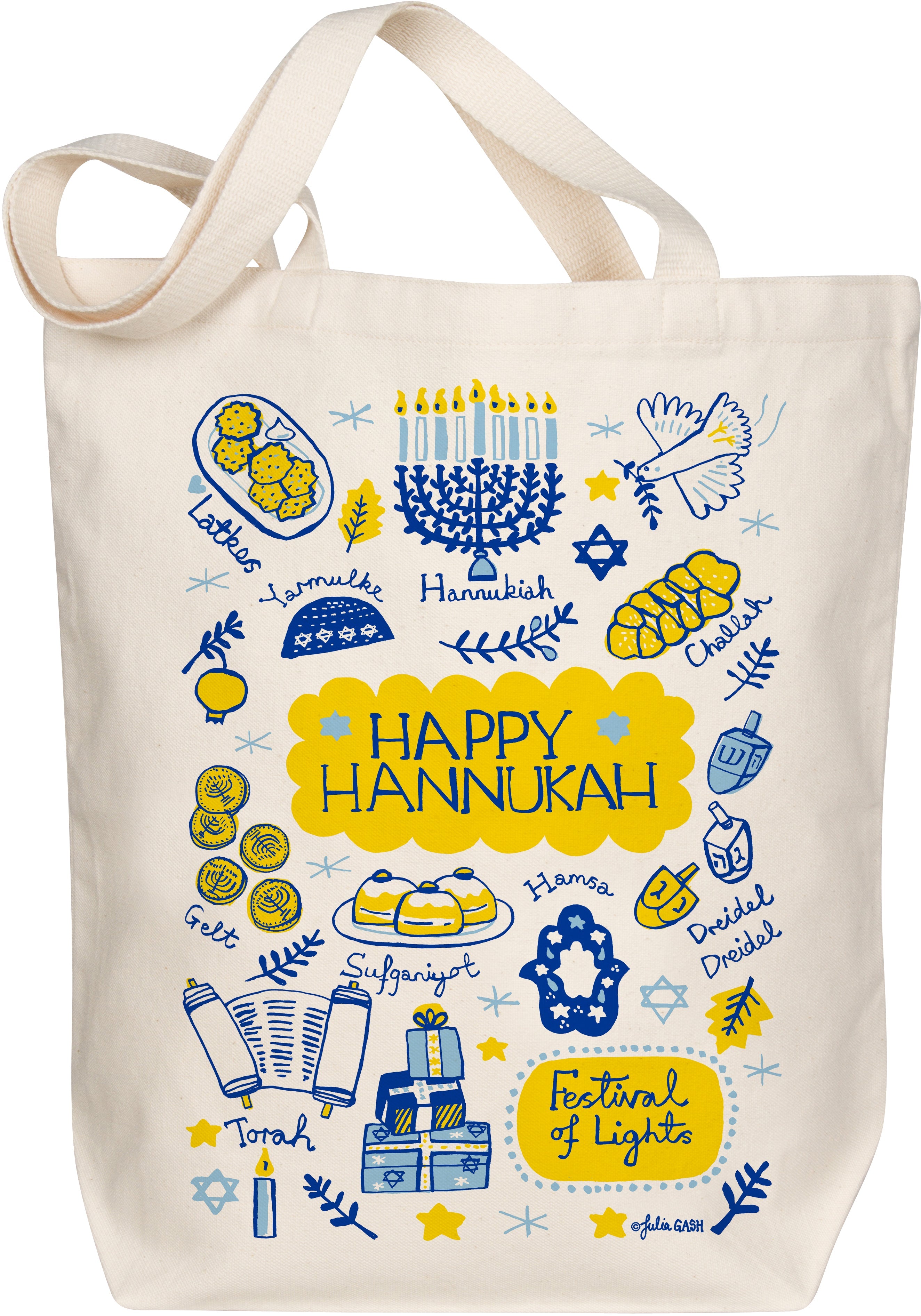 Celebrate the spirit of Hanukkah with this illustrated and eco-friendly tote bag.
